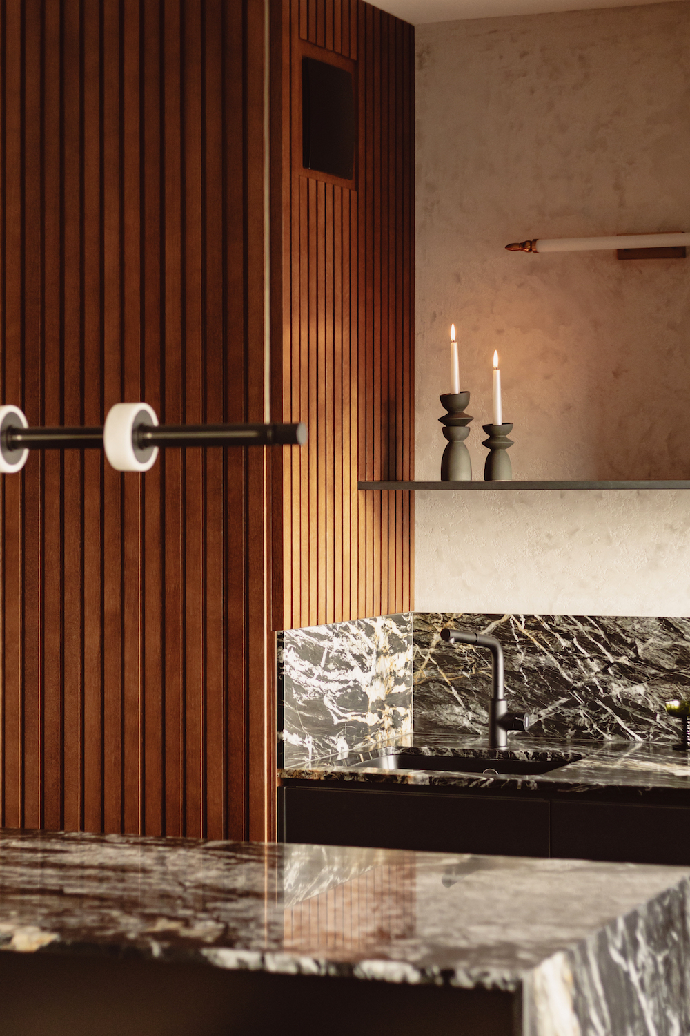 Industrialnie z nutą elegancji – mieszkanie w centrum Gdańska ocieplone drewnem i szlachetnymi materiałami