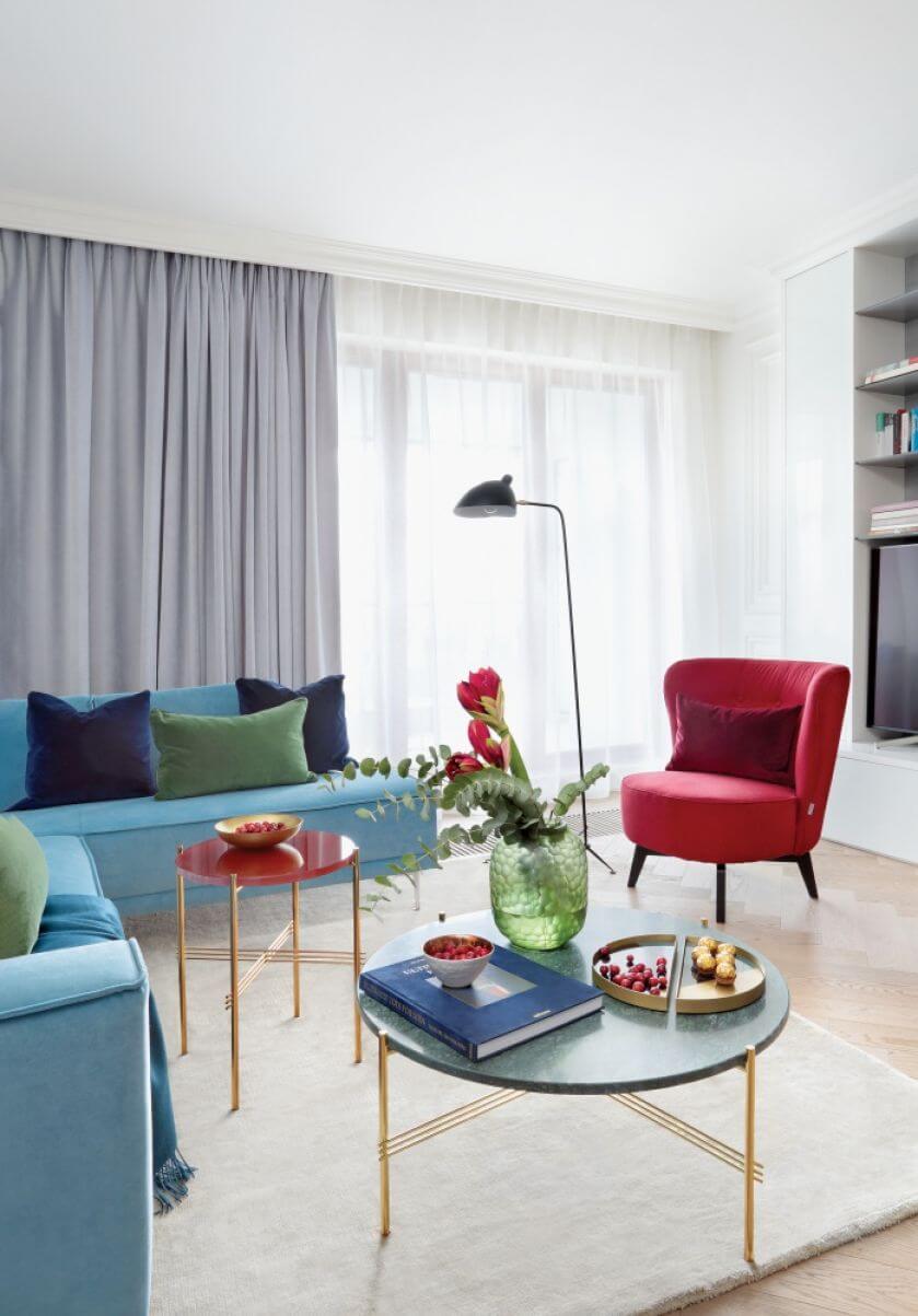 • modne meble o zaokrąglonych kształtach w salonie