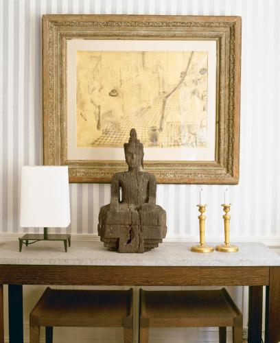 Na konsoli stoi wschodnia figurka. Spotkanie Wschodu z Zachodem