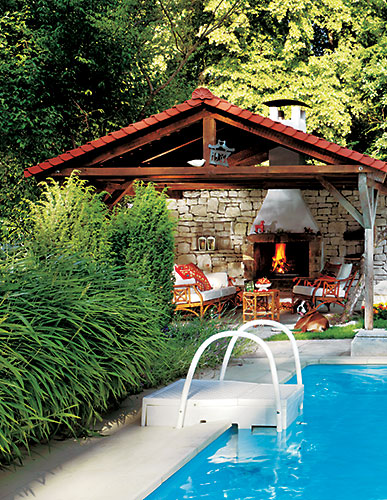 Właściciele tego podwarszawskiego ogrodu pojechali kiedyś na zimowe wakacje do gorącego Meksyku. Przypadek zaprowadził ich w jedno z najpiękniejszych miejsc na stromym wybrzeżu Pacyfiku – do zespołu hotelowych rezydencji Caritas de las Flores www.careyes.com. Tam spędzali długie nocne godziny nad basenem i przed rozpalonym kominkiem. Ciepło żywego ognia dodawało wakacjom tak niezwykłego uroku, że po powrocie postanowili nad swoim base