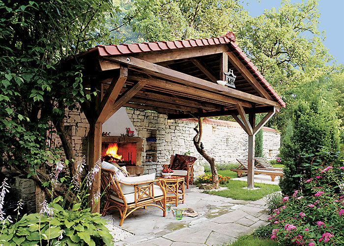 Właściciele tego podwarszawskiego ogrodu pojechali kiedyś na zimowe wakacje do gorącego Meksyku. Przypadek zaprowadził ich w jedno z najpiękniejszych miejsc na stromym wybrzeżu Pacyfiku – do zespołu hotelowych rezydencji Caritas de las Flores www.careyes.com. Tam spędzali długie nocne godziny nad basenem i przed rozpalonym kominkiem. Ciepło żywego ognia dodawało wakacjom tak niezwykłego uroku, że po powrocie postanowili nad swoim base