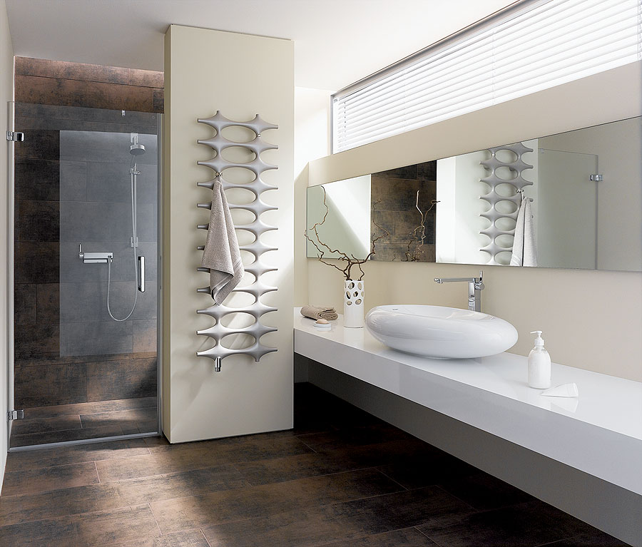 Cel: funkcjonalna i nowoczesna łazienka. Pytanie: co powinno się w niej znaleźć. Odpowiedź: wygodna wanna, cichy i dyskretny prysznic, elegancka umywalka, oryginalny, dizajnerski kaloryfer. Zobaczcie.   POLECAMY TAKŻE: Sauna z iPodem czy ruska bania? Szkło i chrom czy tapety i stora w oknach? Wcale nie trzeba wybierać.   Umywalka jak brylant Niemiecki dizajner Kai Steffan stworzył biżuterię do salonu kąpielowego – nową umywalkę z postumentem Oct