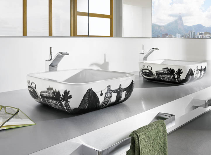 • Umywalka Urban została ozdobiona grafikami słynych stolic świata. ROCA