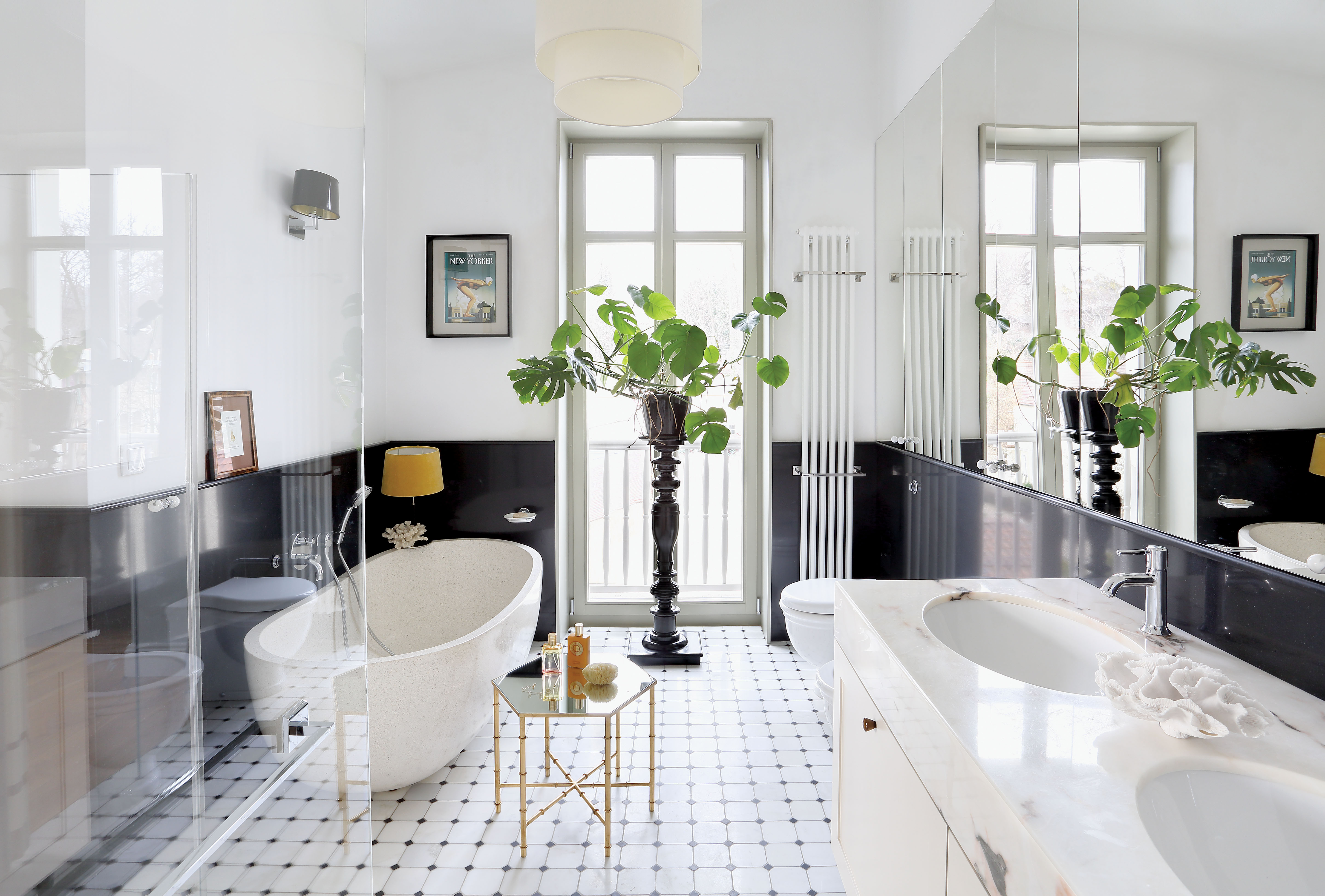 • czarno biała łazienka