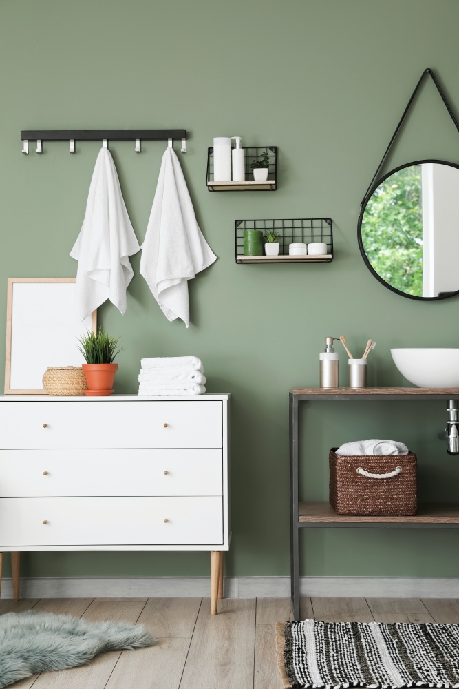 Zielona łazienka w stylu skandynawskim, zdjęcie: shutterstock