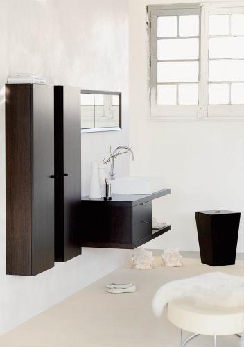 Szafki wiszące Iside w kolorze wenge (40 x 140 x 22 cm) w komplecie z drewnianym koszem na bieliznę. Cena zestawu - 16 880 zł netto. OMNIRES