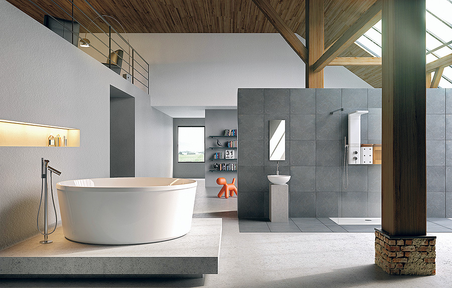 • Zamiast mebli – wnęka w ścianie. Na pierwszym planie wanna Pearl w cenie 7880 zł, A’qua Design.