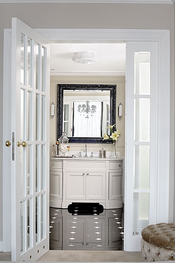 Szafka pod umywalkę i kinkiety z angielskiej firmy Devon Devon.