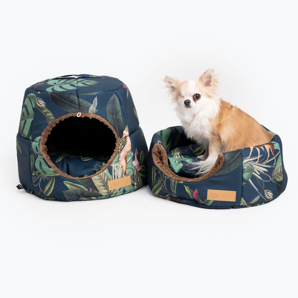 Wygodny domek 2w1 dla kota lub psa. Wzór "Psikolaż" zaprojektowany przez kolażystkę Jagodę Stączek świetnie wpasuje się we wnętrze domu i mieszkania, psyjaciele.com