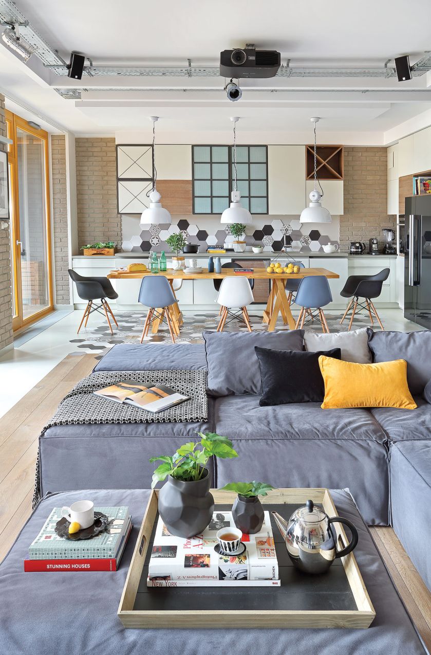 Jesteśmy w mieszkaniu na luksusowym strzeżonym osiedlu, ale czujemy się jak w domu awangardowych artystów. Taki luz i fantazja. I nie chodzi  tylko o rower na ścianie.