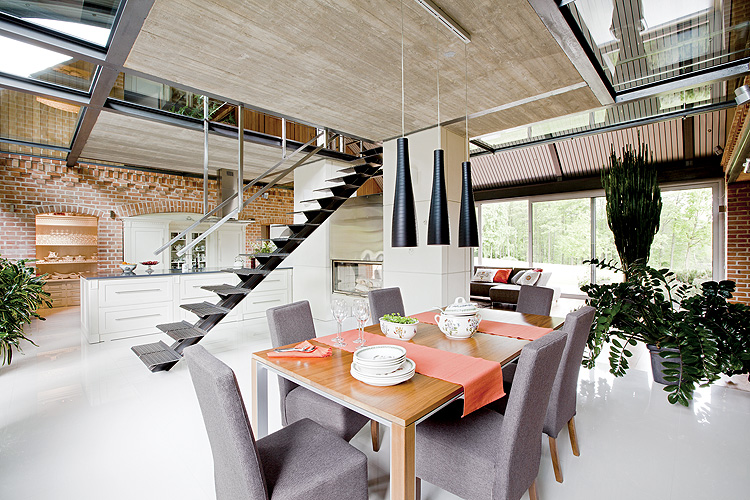 • Ceglana ściana i nowoczesne meble - dobre połączenie.