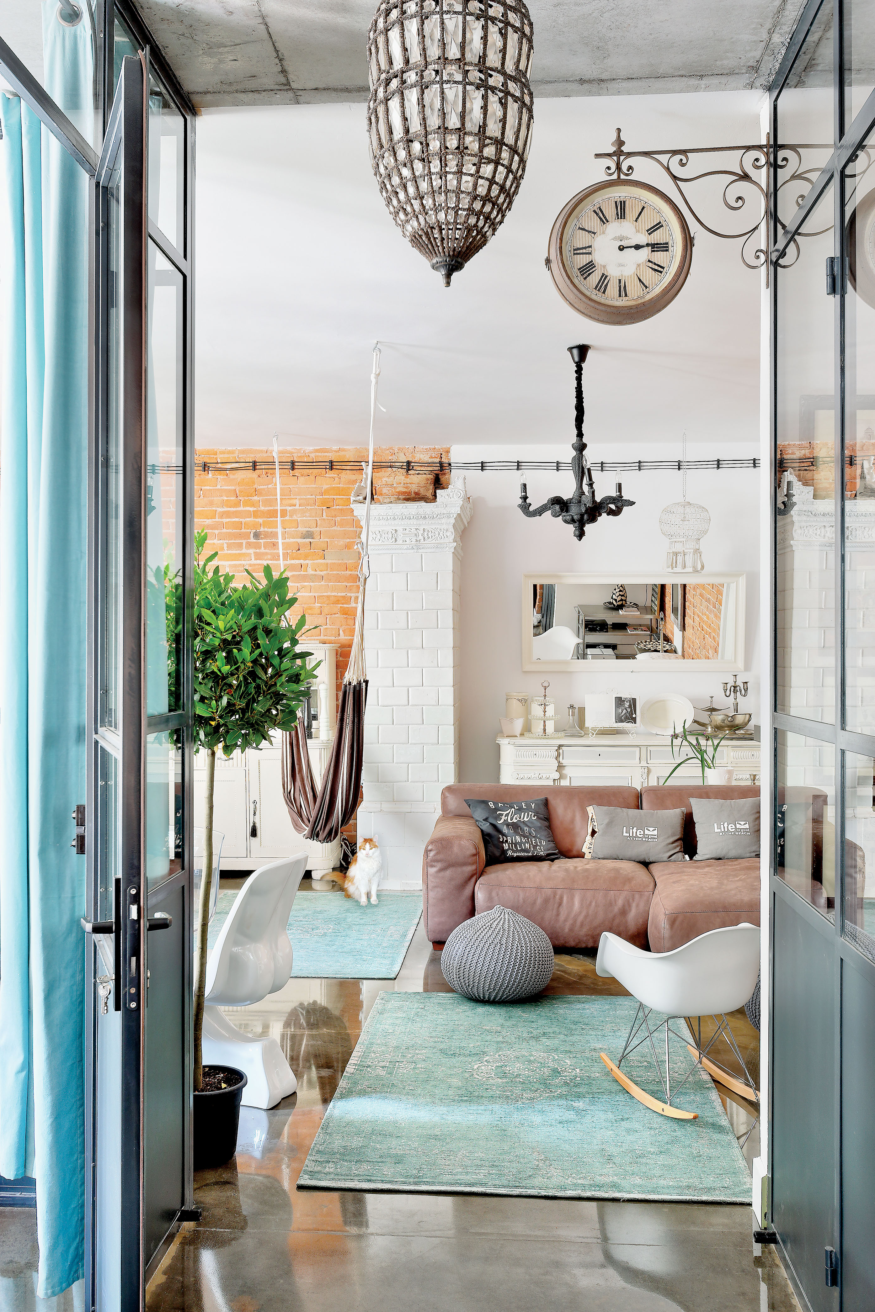 • Loft ożywiły turkusowe dodatki. W tym kolorze są dywany, poduchy i tkaniny w sypialni.