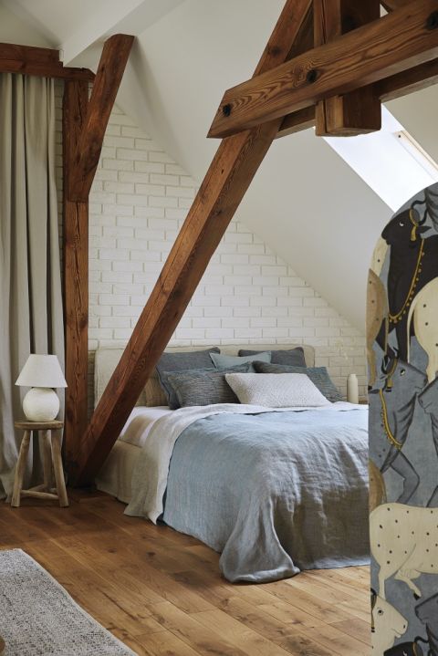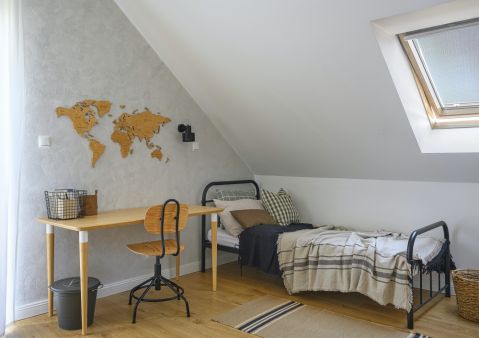 Jasny, elegancki i wygodny penthouse pod skosami – aranżacja luksusowego apartamentu z widokiem na Wawel