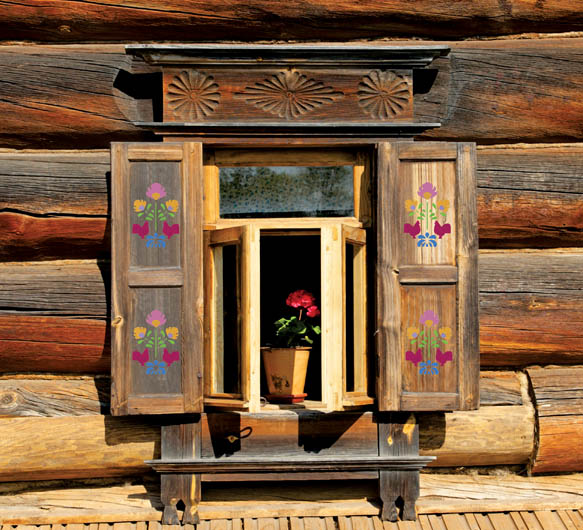 • Wzór z szablonu świetnie wygląda na drewnianych okiennicach.