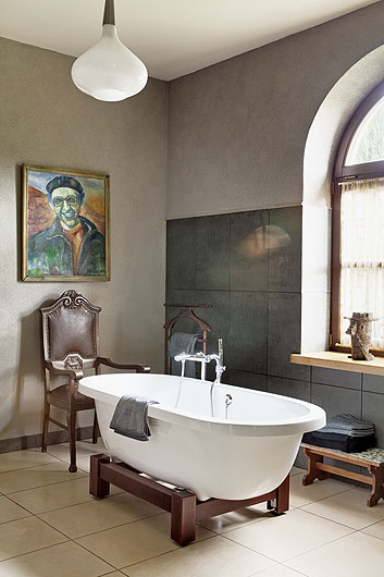 Sztuka pojawia się również na ścianach łazienki, która jest jak salon kąpielowy.