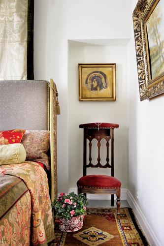 • Telewizor na sztalugach wygląda jak obraz. Dzięki temu nie rzuca się w oczy w barokowej sypialni.