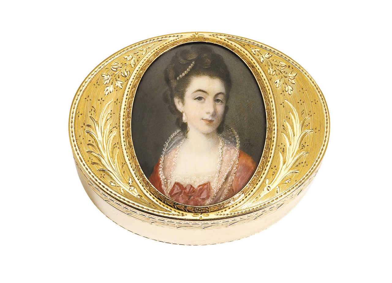 • Pudełko ze złota i kości słoniowej z miniaturą autorstwa Jeana-Étienne’a Liotarda, XVIII w.