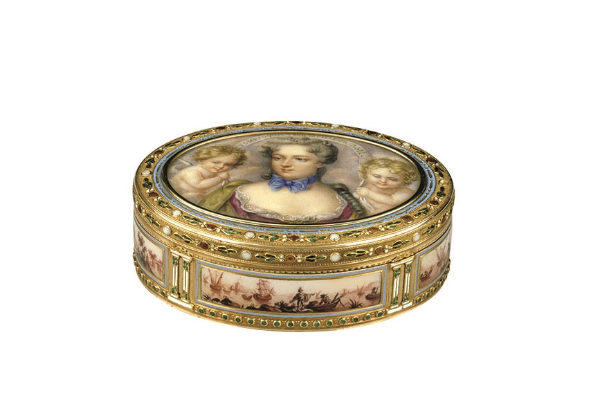 • Pudełko ze złota i kości słoniowej z miniaturą autorstwa Jeana-Étienne’a Liotarda, XVIII w.