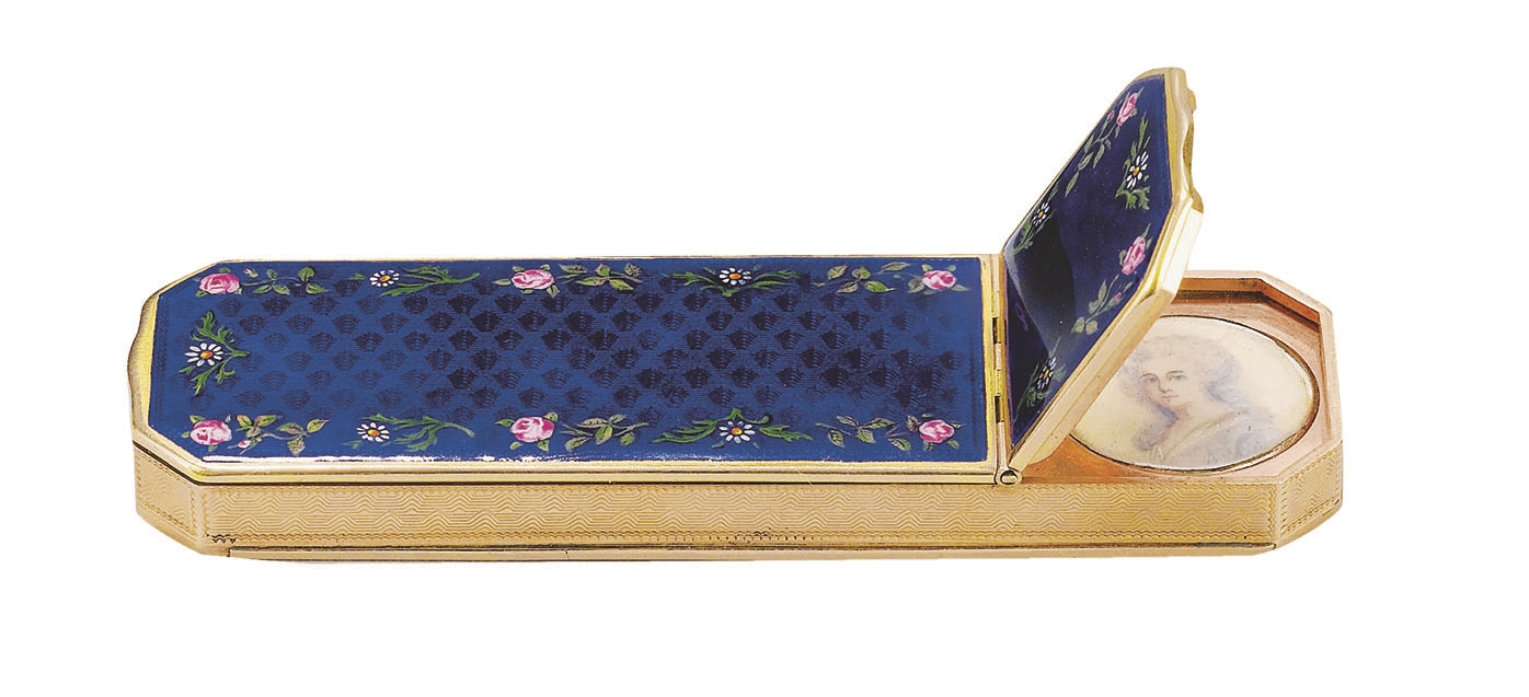 • Pudełko ze złota i kości słoniowej z miniaturą autorstwa Jeana-Étienne’a Liotarda, XVIII w.