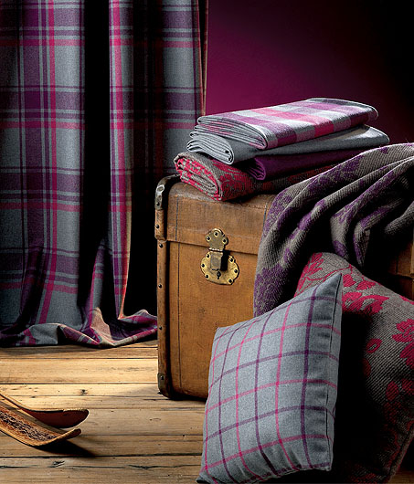 • Jak angielskie tweedy. Fioletowo-amarantowa krata Wind Courchevel to wełna z poliestrem (506 zł/metr). FONZI
