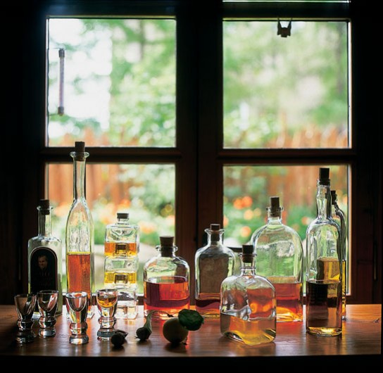 • Drewniany barek sprawdza się jako kuchenny blat pod oknem.