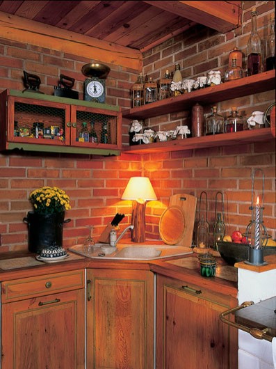 • W drewnianym domu świetnie wyglądaja kolorowe meble - oczywiśie także drewniane.