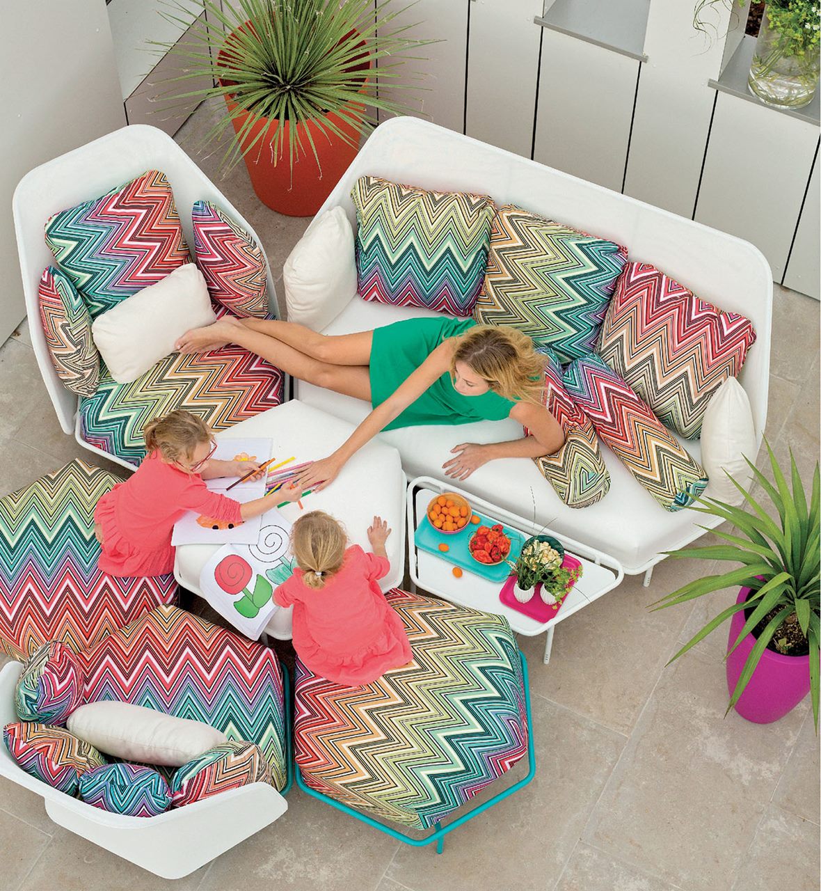 Dziś taras wygląda jak elegancki salon, w którym zniknęły ściany, a zostały meble: wszędzie wygodne kanapy, stoliki, fotele, podnóżki. I nikomu nie straszny nagły deszcz.