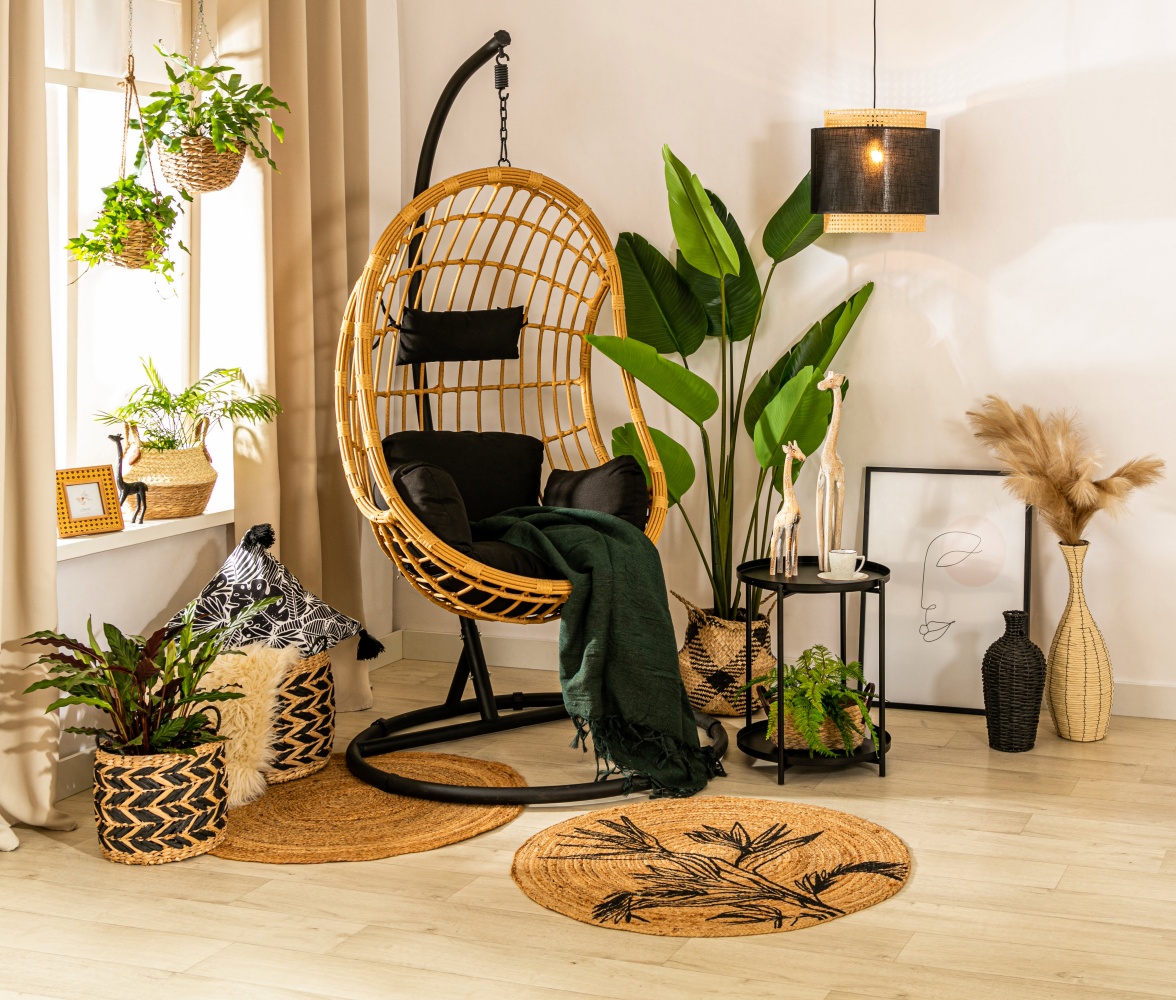 • fotel wiszący ze sztucznego rattanu