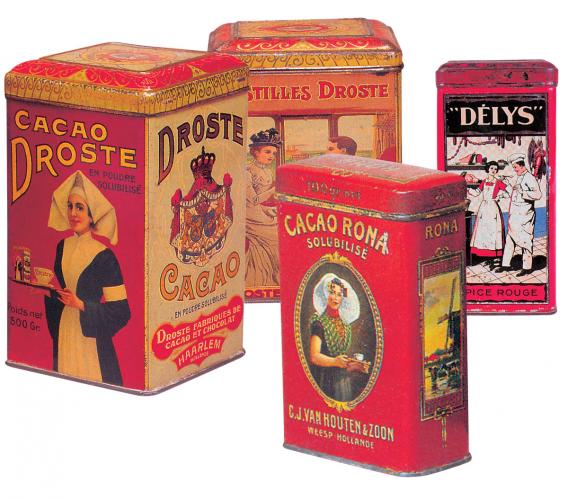 • Puszki na kakao francuskiej firmy De L union. Puszka na ciastka, projekt Ben George, 1868 r.