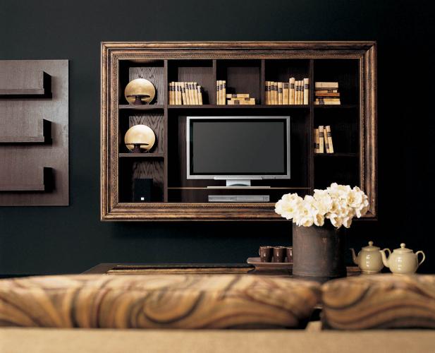 • Wiszący regał firmy Volpi ozdobiony rzeźbionym gzymsem. Kosztuje 4640-5720 zł. HEBAN