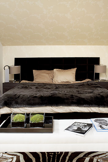 Minimalizm z rumieńcem.  Cały pokój zamieniał się w puszczę albo sawannę, kiedy tata opowiadał o polowaniach – wspomina Rafał. – Mówił tak pięknie, że nie mogłem się doczekać, kiedy wróci z myśliwskich wypraw. Ten dom ma o nim przypominać. Siedzi przy biurku, którego nogi zrobione są z poroży jeleni. Ze ścian patrzy na niego dwadzieścia par oczu. Zebra i antylopa, trofea z Kenii (w salonie) przypominają o tym, jak tata, stojąc na czatach, omal n