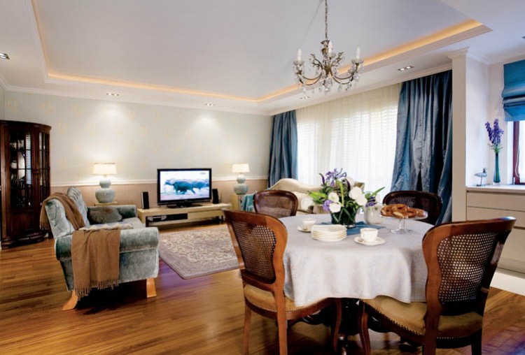 • Duże okno w salonie sprawia wrażenie, jakbyśmy mieli ujrzeć za nim błękit oceanu. To dzięki ukrytym za zwiewną firanką
