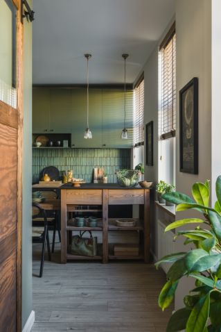 • zielona kuchnia w mieszkaniu 50 mkw