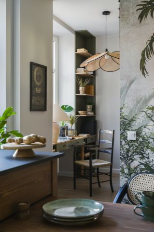Powrót do artykułu Zieleń i drewno – mieszkanie o powierzchni 50 m2 w stylowej kamienicy w Łodzi, utrzymane w duchu kolonialnym