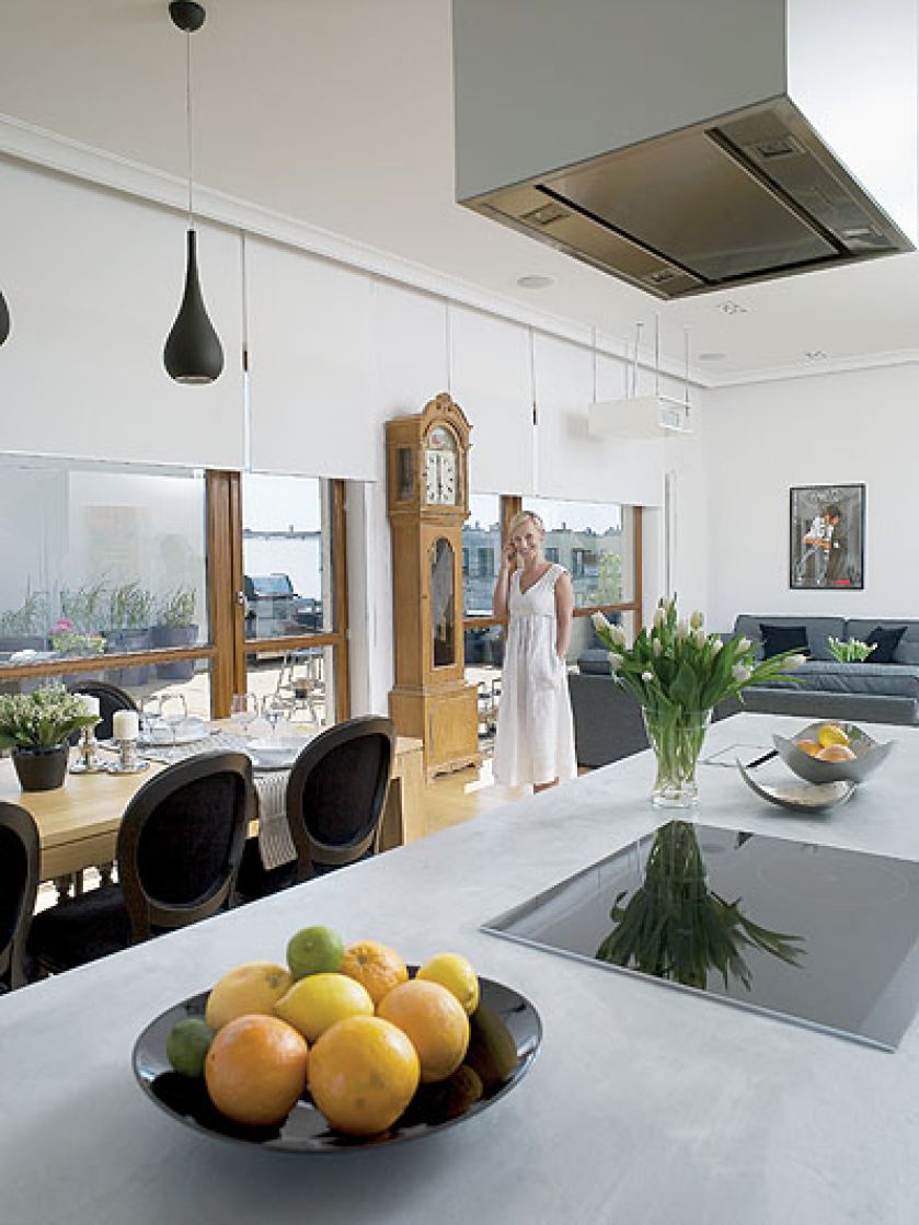 • Kuchenny blat imituje beton. Mieszkanie pełne słońca