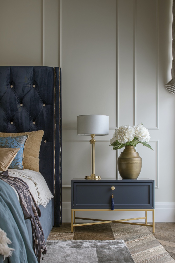 • złote dodatki do sypialni w stylu nowojorskim