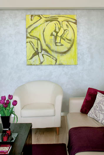 • Obrazy Anny Mierzejewskiej okazały się jakby stworzone do tego wnęrza - zagrały tu fantastycznie.