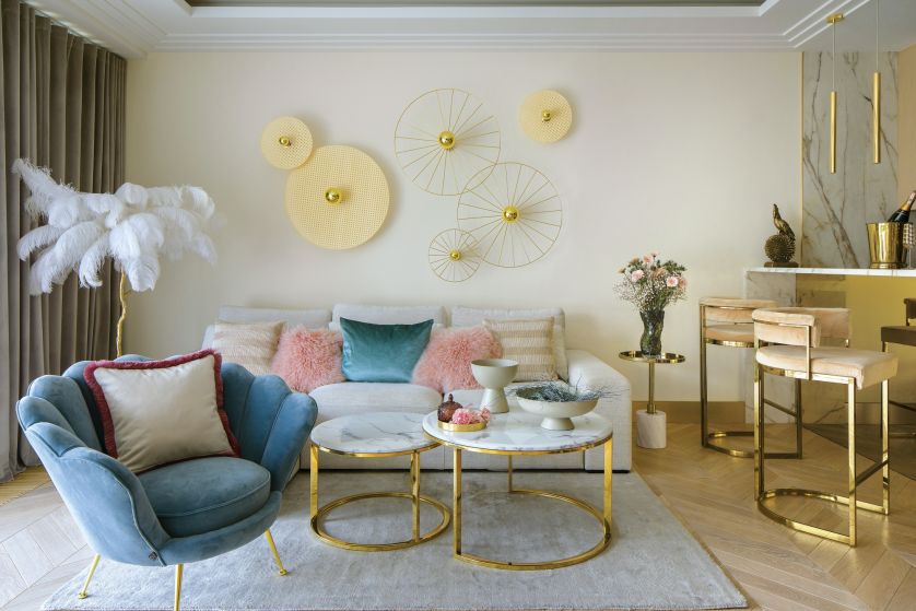 Połączone z jasnymi kolorami, szlachetnymi materiałami, miękkimi tkaninami i pięknie oświetlone złoto może sprawić, że w domu zrobi się kobieco i bardzo przytulnie.