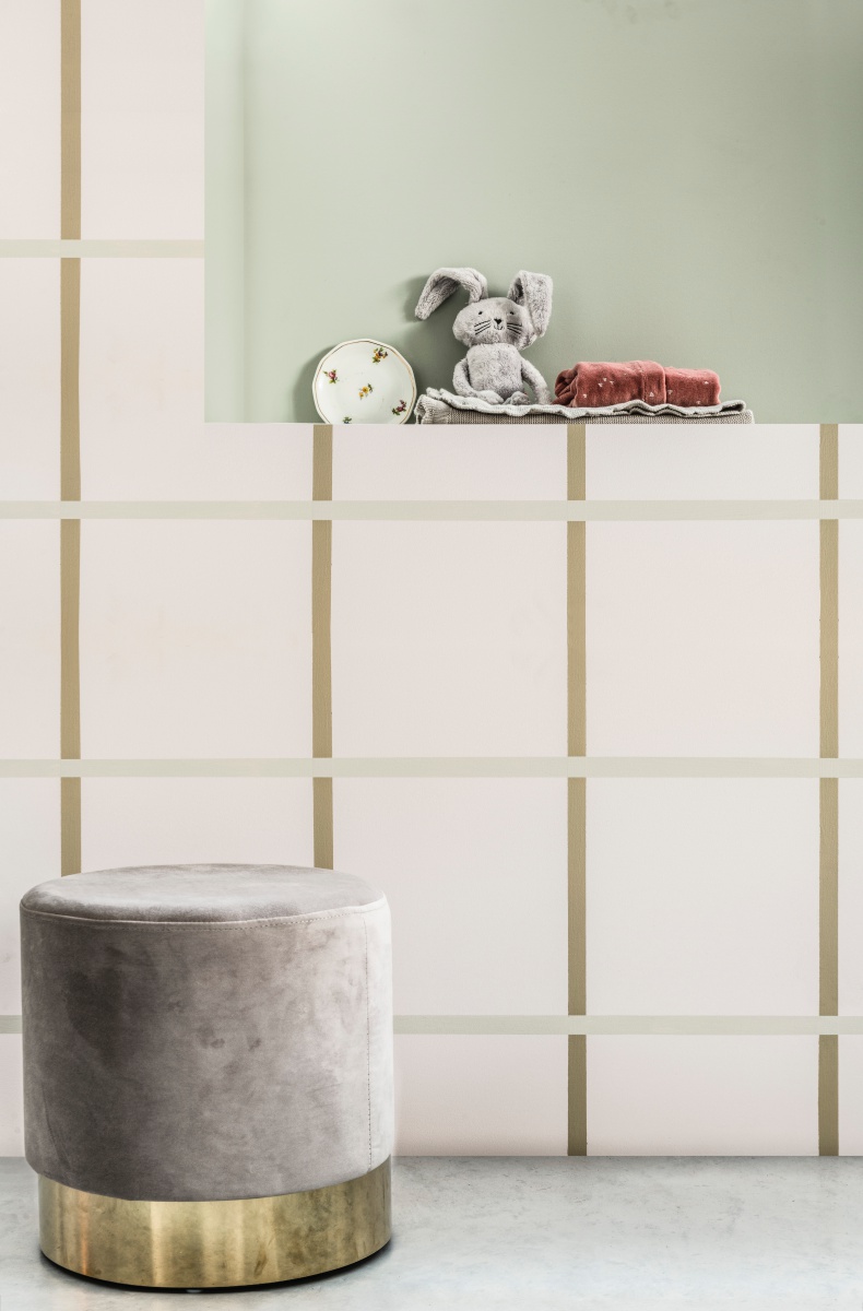 • Aranżacja z miętową szarością i kolorami z palety Care