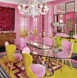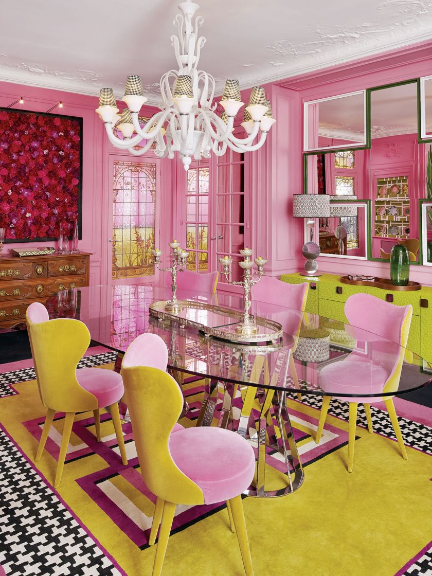 Jadalnia Géraldine Prieur z różowymi ścianami.