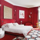 • Sypialnia Géraldine Prieur tonie w krwistej czerwieni.