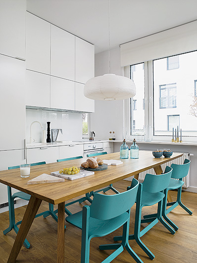 Jaki kolor dodatków będzie dobrze wyglądał w białym mieszkaniu? Nowoczesne wnętrze stanie się przytulne np. dzięki turkusowi!