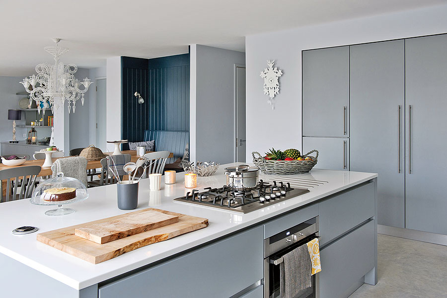 Dom nad jeziorem jest ogromny. Króluje w nim szarość, którą ogrzewają żółte dodatki i drewno z modrzewia syberyjskiego. Są
