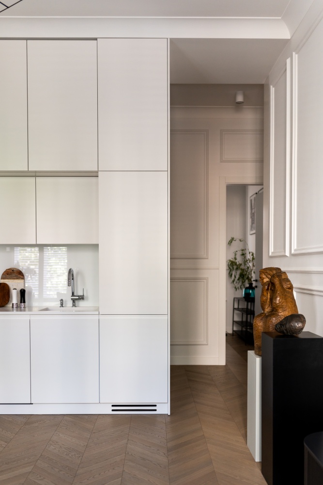 W tym eleganckim mieszkaniu na warszawskiej Pradze styl paryskiej kamienicy pięknie łączy się z nowoczesnością