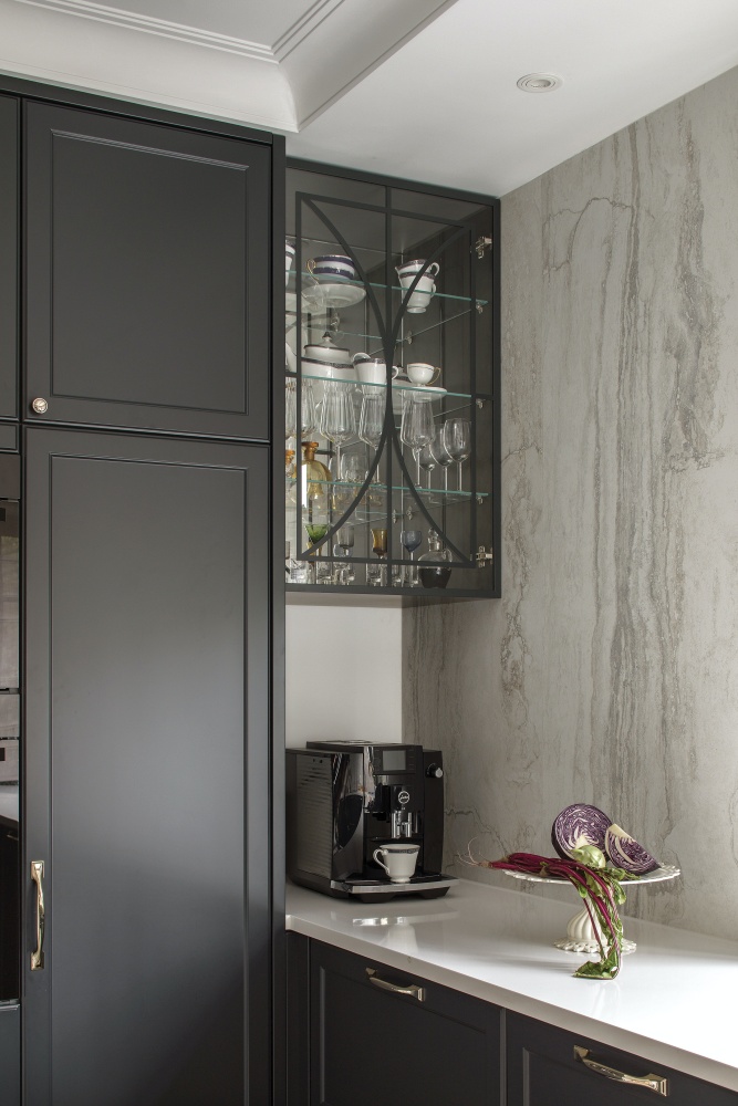 • ryflowana kuchnia ciemne drewno