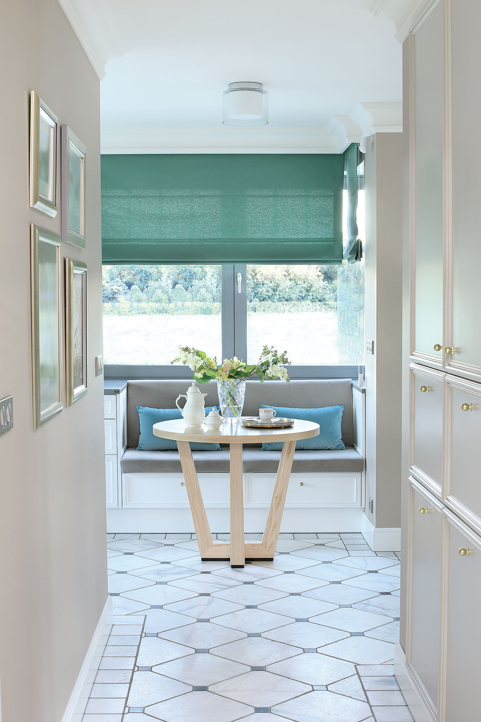 Jednym z najmilszych zakątków jest siedzisko wbudowane pod oknem kuchennym.