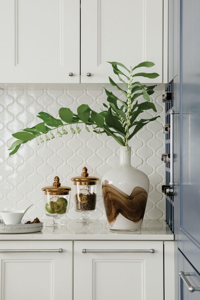 Bez tak zwanej wisienki na torcie żadne mieszkanie, nawet najlepiej urządzone, nie zrobi wrażenia. W tym apartamencie urządzonym w stylu hamptons zachwyca malarska tapeta w kwiaty.