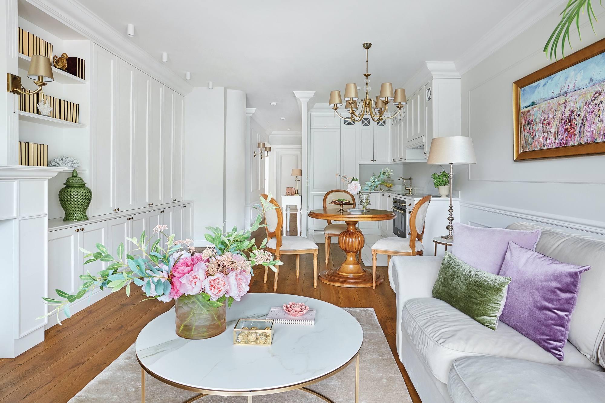 • nowoczesny apartament z klasycznymi detalami i odcieniami bieli i granatu