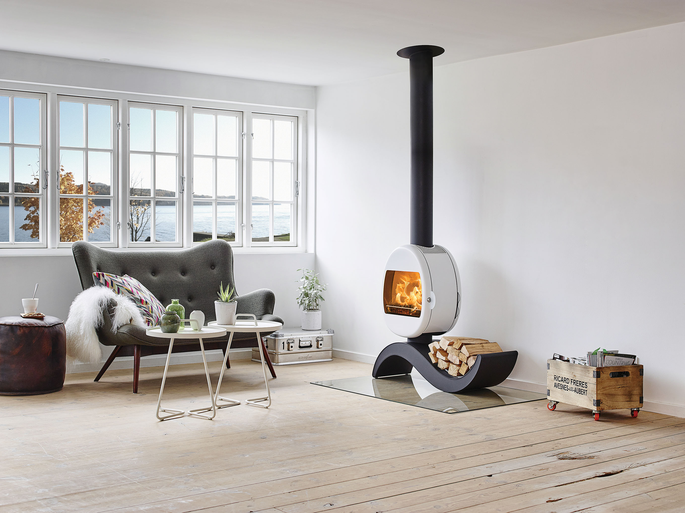SCAN, stalowy piec z półka na drewno