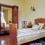 • W sypialni stoją dwa empirowe łoża ze złoceniami- jedno z czeczoty, drugie z mahoniu.
